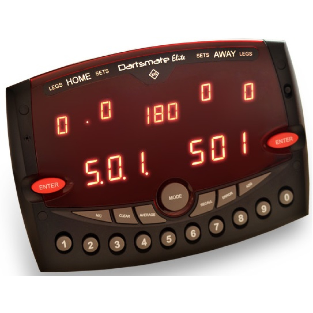 Een electronische dart scorer met vele mogelijkheden. Rekent je gemiddelde uit. Houdt uiteraard de score bij. Met trainingsfaciliteit en handicap mogelijkheden. Mogelijkheid tot fout herstel. Laatste 40 scores terug te lezen. Werkt op lichtnet. Zeer gebruiksvriendelijk. Wordt compleet met montagemateriaal geleverd. Een absoluut top apparaat voor een geweldige prijs. De grote broer van de Dartsmate 3. Deze Dartsmate Elite geeft ook de sets weer op het scherm en met de Elite kan je spelen tegen een computer. Stijlvolle vormgeving. De afmetingen van dit apparaat zijn: 19 cm x 26,5 cm x 3,5 cm. Op dit elektronische apparaat zit na aankoop nog 1 jaar garantie.