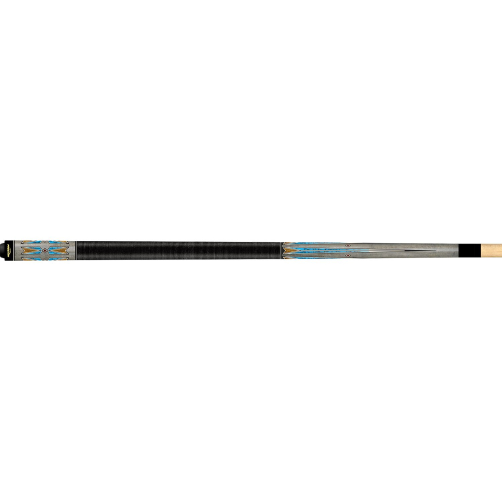 De Maxton Mercury poolkeu nummer 2 heeft een lichtgrijs gebeitste butt met onder en boven de grip een klassieke grafische UV-print in blauw, zwart, bruin en wit. De grip is uitgevoerd in zwart linnen. De tweedelige poolkeu Mercury heeft een lengte van 147,32 cm, waarbij zowel de butt als de shaft een lengte van 73,66 cm hebben. De poolkeu is gemaakt van esdoorn, de shaft heeft grade A8 met een diameter van 13 mmm en is voorzien van een lijmpomerans.