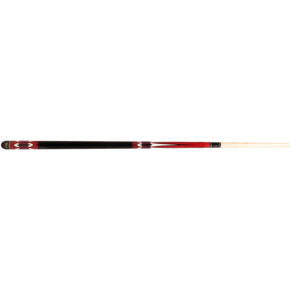 Deze 2-delige Orca S2 beginnerskeu is gedecoreerd met geometrische patronen in zwart en wit en is afgewerkt in een hoogglans UV lak. De 18T flat joint zorgt voor volledig contact tussen de butt en shaft waardoor de Orca poolkeu een relatief zachte impact op de cueball maakt.