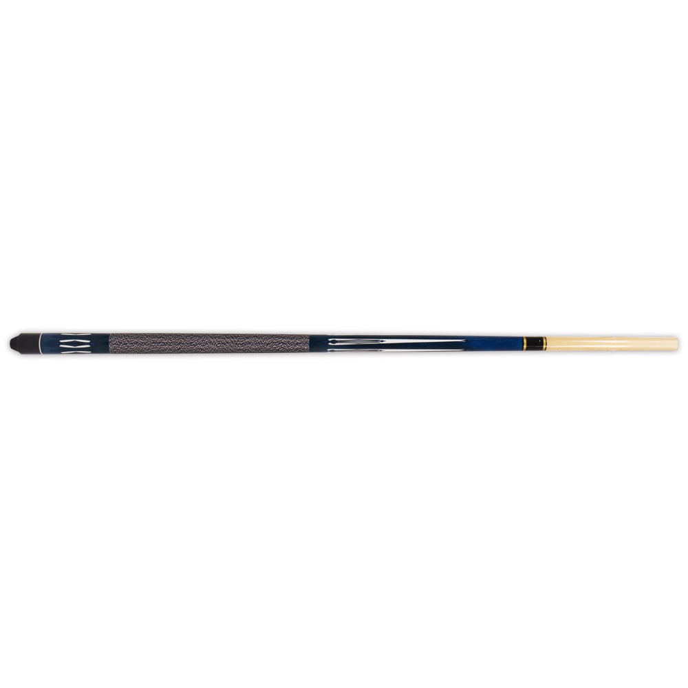 Goede kwaliteit 2-delige hardhouten keu. Strak design in shaft en butt . Met plastic screw-on tip (eenvoudig te vervangen), messing joint met implex ringen en zwarte nylon grip met witte spikkels.